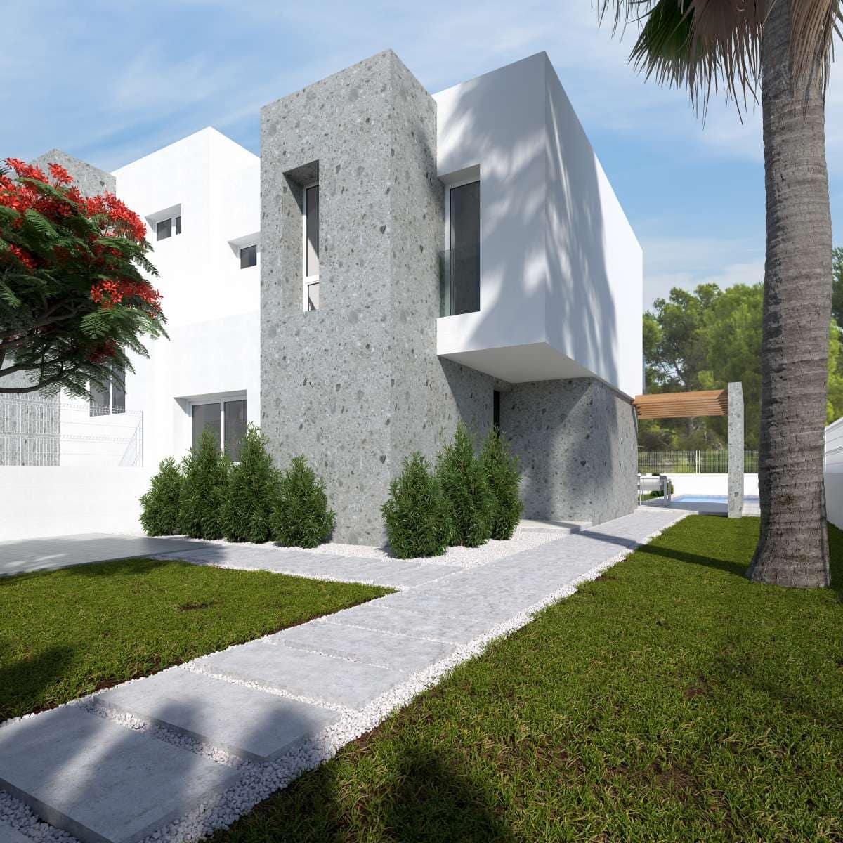 The outdoor area with plots between 300-400m² includes large terraces and a private pool, to fully enjoy the sun, light and nature.br>br>
