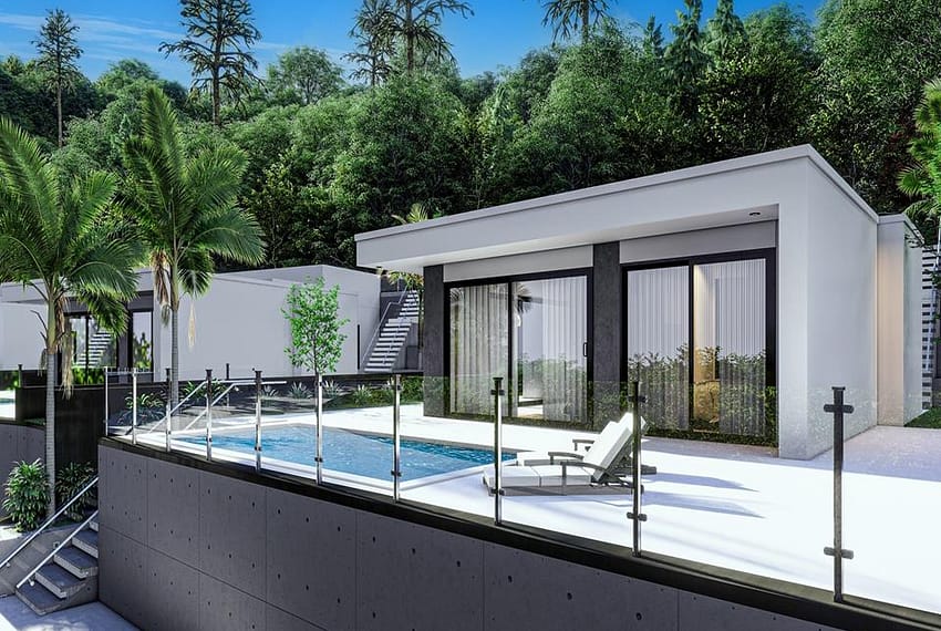 Swimming pool of 6 X 3 meters with pre-installation of pool heating, glass railings on pool terraces