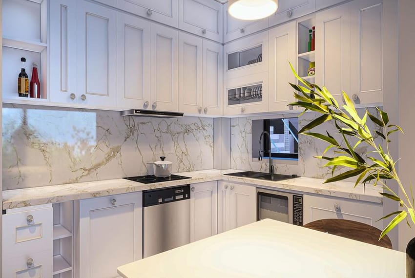 Kitchen wall and floor units with granite tops