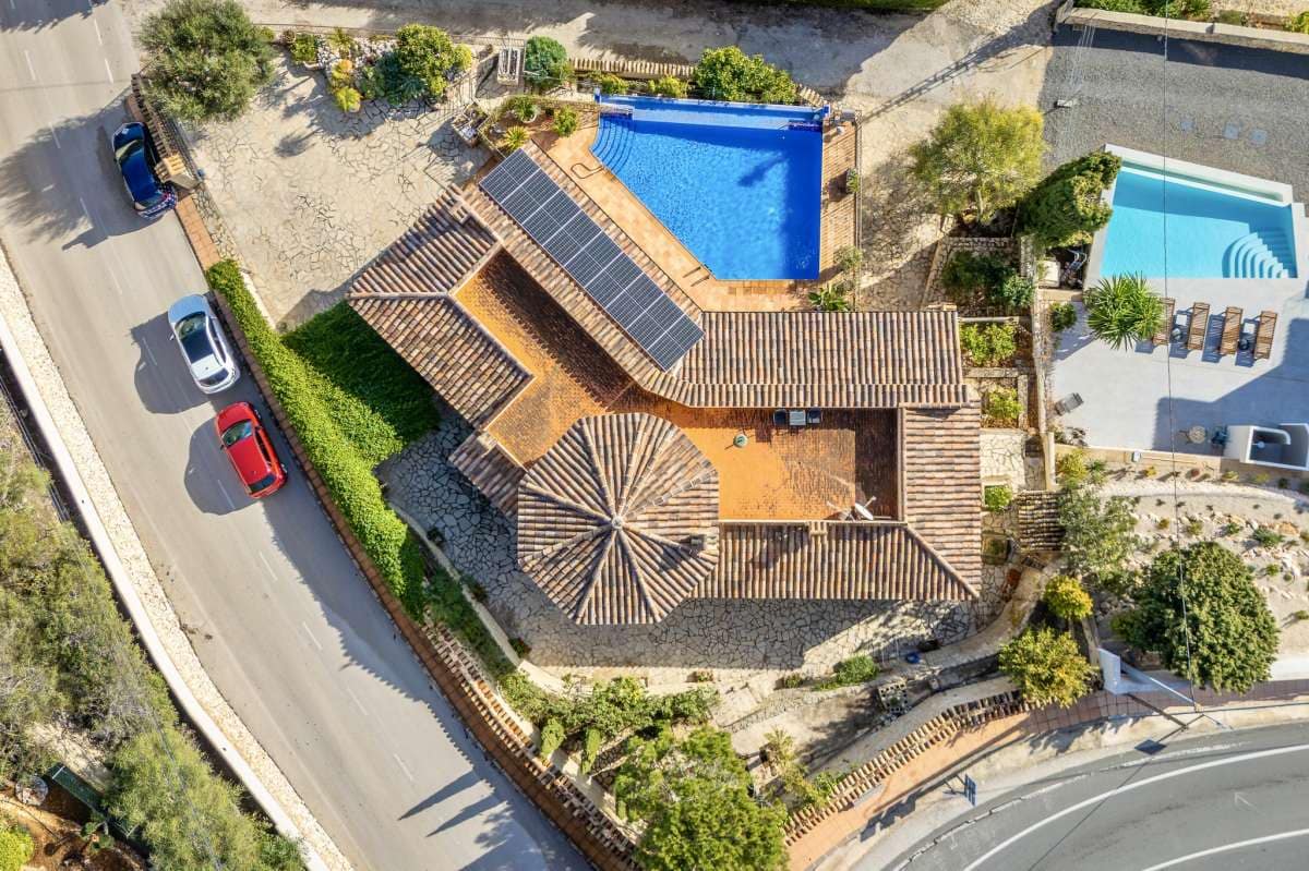 Bathed in Mediterranean light and surrounded by timeless natural beauty, this exceptional villa offers a rare sense of privacy, space, and effortless elegance. Set within a peaceful residential enclave, the property enjoys open views toward the sea and the iconic Peñón, creating a daily backdrop that feels both inspiring and serene.Built in 2010 on a generous 900 m² plot, the villa offers 387 m² of constructed area, thoughtfully designed in a Mediterranean country style using natural stone that blends harmoniously with its surroundings. The architecture combines authenticity with comfort, creating a home that feels warm, solid, and enduring.Outdoor living is at the heart of this property. Expansive terraces invite long lunches, sunset evenings, and relaxed moments overlooking the infinity pool, the sea, and the dramatic silhouette of the Peñón. Every angle has been designed to enhance the connection between indoor and outdoor spaces.The property offers excellent parking facilities, including private outdoor parking for several cars as well as a large private garage, ensuring both convenience and discretion.Interior LayoutThe main floor is dedicated to daily and evening living. A welcoming entrance hall leads into a bright open-plan living space with direct access to the terrace. The kitchen flows seamlessly into the living room, creating an ideal environment for entertaining and everyday life.