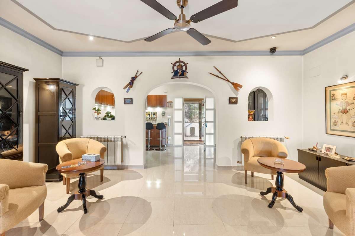 Perched in an elevated, peaceful setting, this villa enjoys full privacy and some of the most breathtaking sea views on the entire coastline — a place where the horizon opens wide and the landscape becomes part of the home.This distinctive property stands out for its extraordinary dimensions, generous outdoor spaces, and exceptional potential. While it would benefit from renovation, the solid structure and thoughtful architectural details make it a rare opportunity for those looking to create a truly remarkable residence.The villa boasts 180-degree panoramic views of the Mediterranean, reaching as far as Ibiza on clear days — an incredible backdrop for both daily living and entertaining.Upon entering, you are greeted by a charming bar area that seamlessly connects to the spectacular double-height living room, flooded with natural light through floor-to-ceiling windows that open directly to the terrace and pool. On this main level, you will also find a spacious kitchen with terrace access, a primary bedroom with dressing room and en-suite bathroom, and an additional bedroom with a full bathroom.The lower floor features a versatile space, ideal for guests or independent living. This level includes a large living room, bedroom, gym (convertible into another bedroom), full bathroom with direct access to the pool, and a closed garage. With its own independent entrance, it offers complete privacy.The top floor is dedicated to wellness, featuring a sauna, jacuzzi, and a terrace with breathtaking sea views — the perfect retreat.The exterior is equally impressive: a strategically positioned pool to make the most of the views, a fully equipped outdoor kitchen with oven and barbecue, and a parking area for at least 15 vehicles. The plot has two separate entrances, both with automatic gates, ensuring easy access and convenience.As a major additional benefit, the villa includes a 30 kW solar panel installation, significantly reducing energy costs while supporting the property’s extensive spaces and facilities.In summary, this is a one-of-a-kind villa that blends scale, character, and outstanding potential — an ideal choice for those seeking a unique home with unmatched views and exceptional possibilities for future value.