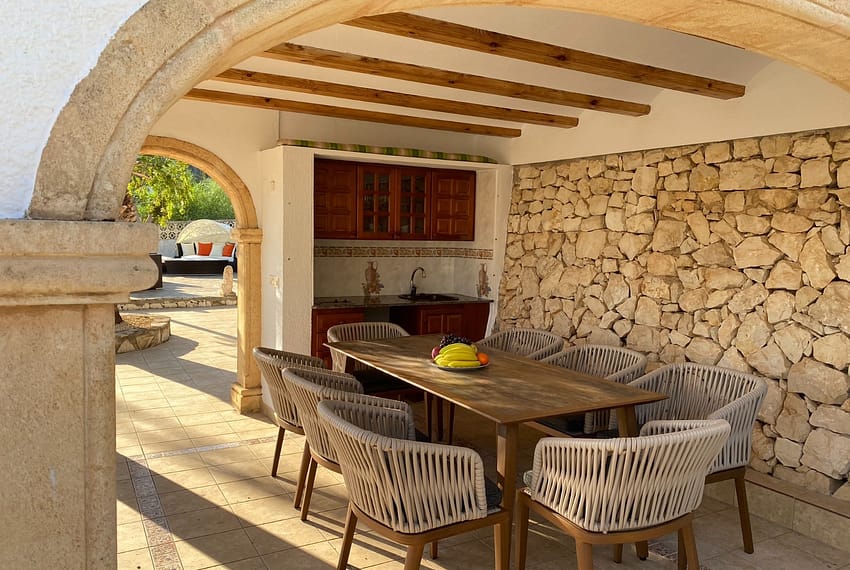 This traditional villa for sale is located in the sought-after San Jaime area of Benissa. San Jaime is a fine, well-kept, long-established residential area. Conveniently located as it is only 5 car minutes to the Pepe la Sal supermarket where many international products are for sale. The small beach at Cala Andrago is a 6-minute drive away. The large sandy beach and the lovely centre of Moraira can be reached in less than 10 car minutes. San Jaime also has a golf course: Golf d’Ifach. This course is less than 1.5 km from the property.