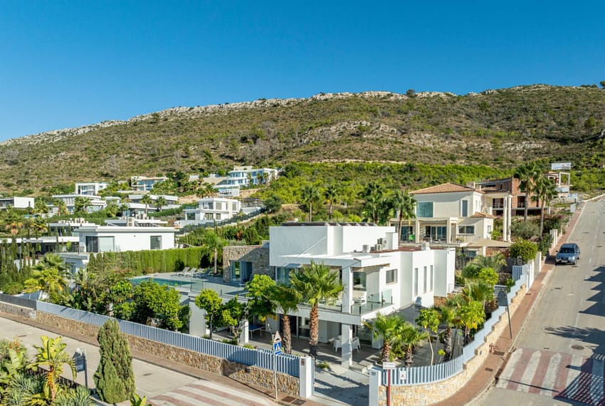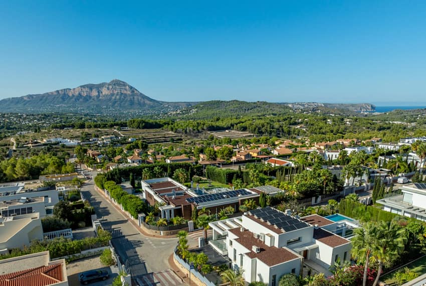 Spectacular modern villa for sale in JaveaLocated in the prestigious residential area of Mount Olimpio in Javea, this striking modern villa combines clean architectural design with comfort and seamless indoor-outdoor living. It enjoys amazing panoramic views of Benitachell, the Montgó and Javea. The main floor features a bright, open-plan layout with a contemporary kitchen, living and dining areas that open directly onto the pool terrace through large glass doors, bringing in natural light throughout. This level also offers three spacious bedrooms, all with en-suite bathrooms and a cloakroom. The garden includes a private entertaining area with barbecue, surrounded by landscaped grounds that ensure privacy. On the lower level, the villa has two further bedrooms, a shower room and lounge, a versatile space ideal for larger families and guests. In addition, there is a home office, cinema room and a large laundryrooom, centralised air-conditioning, parking for 2 cars and open and covered terraces. Designed for both relaxation and entertaining, this property offers stylish living in one of Javea’s most sought-after neighbourhoods with similar style homes.