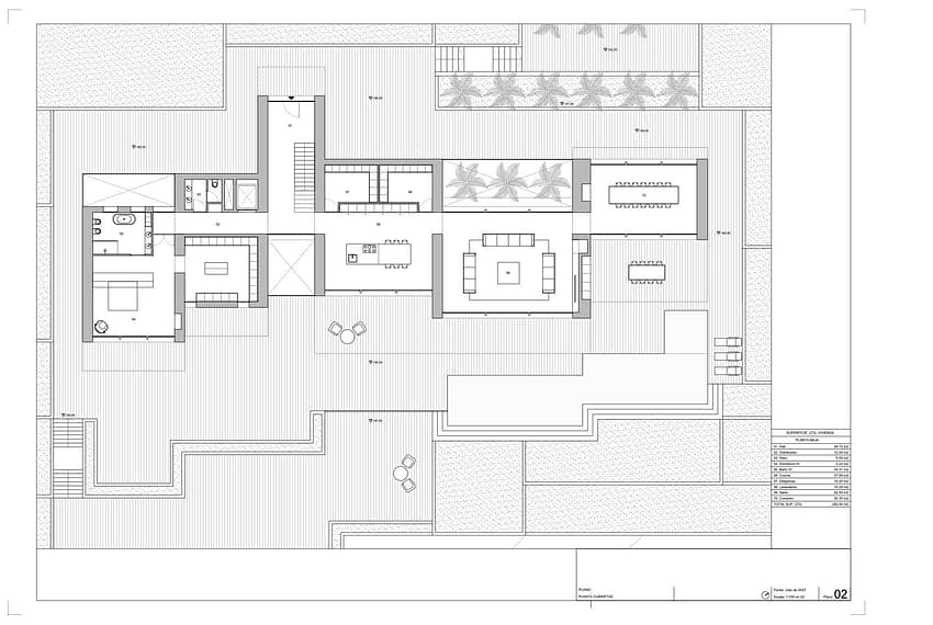 Built on a plot of 2,896 m², distributed over 3 floors connected by internal staircase and elevator, with 2,264.10 m² built, distributed in 6 bedrooms, 6 bathrooms, 2 toilets, fully equipped open kitchen with pantry and laundry, living room, dining room with direct access to the terrace with BBQ and water surface pool, 650 m² covered and uncovered outdoor terraces, equipped underfloor heating with heat pump, ducted air conditioning, garden, closed garage for 6 cars, storage rooms, solar panels…