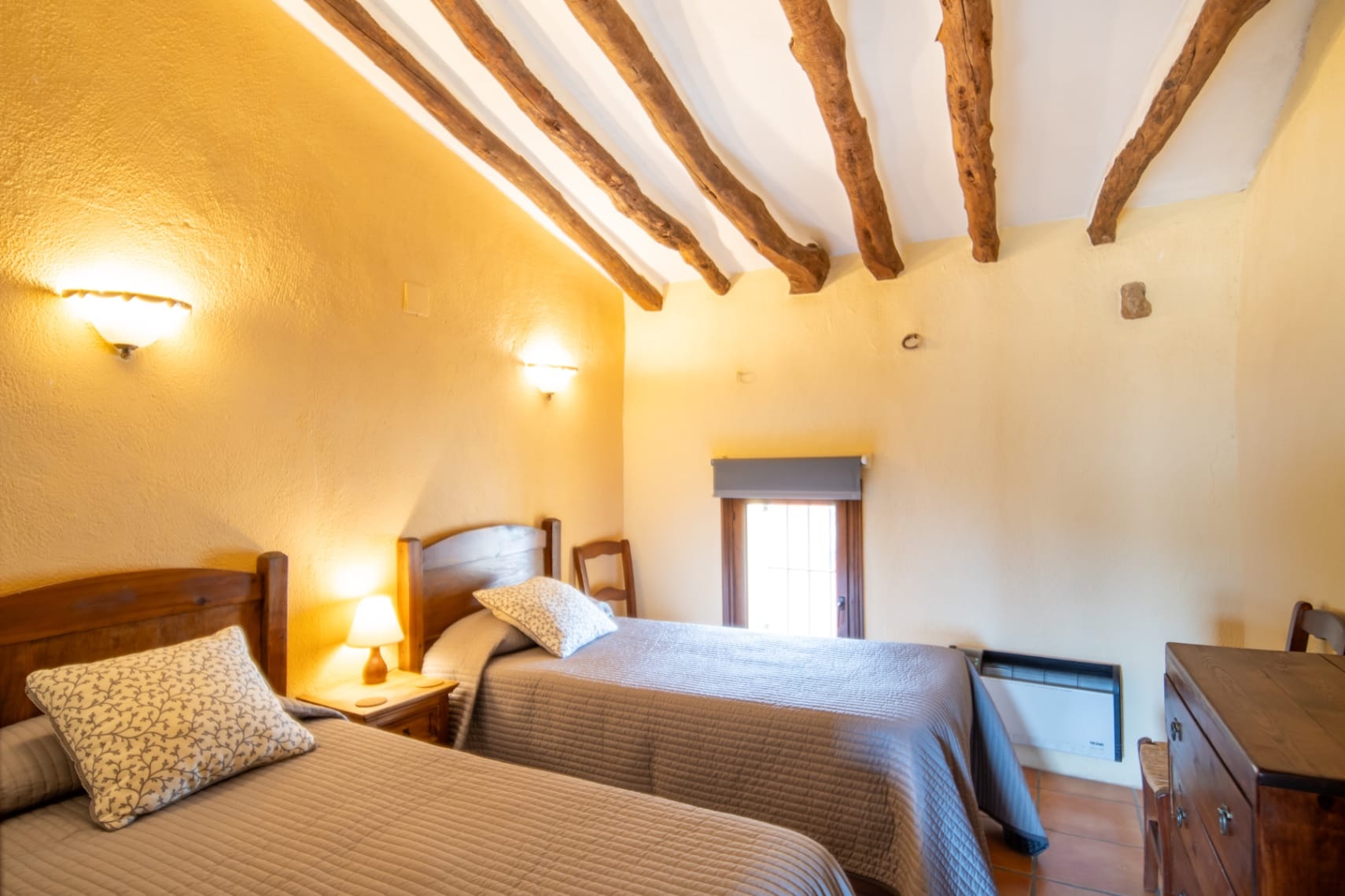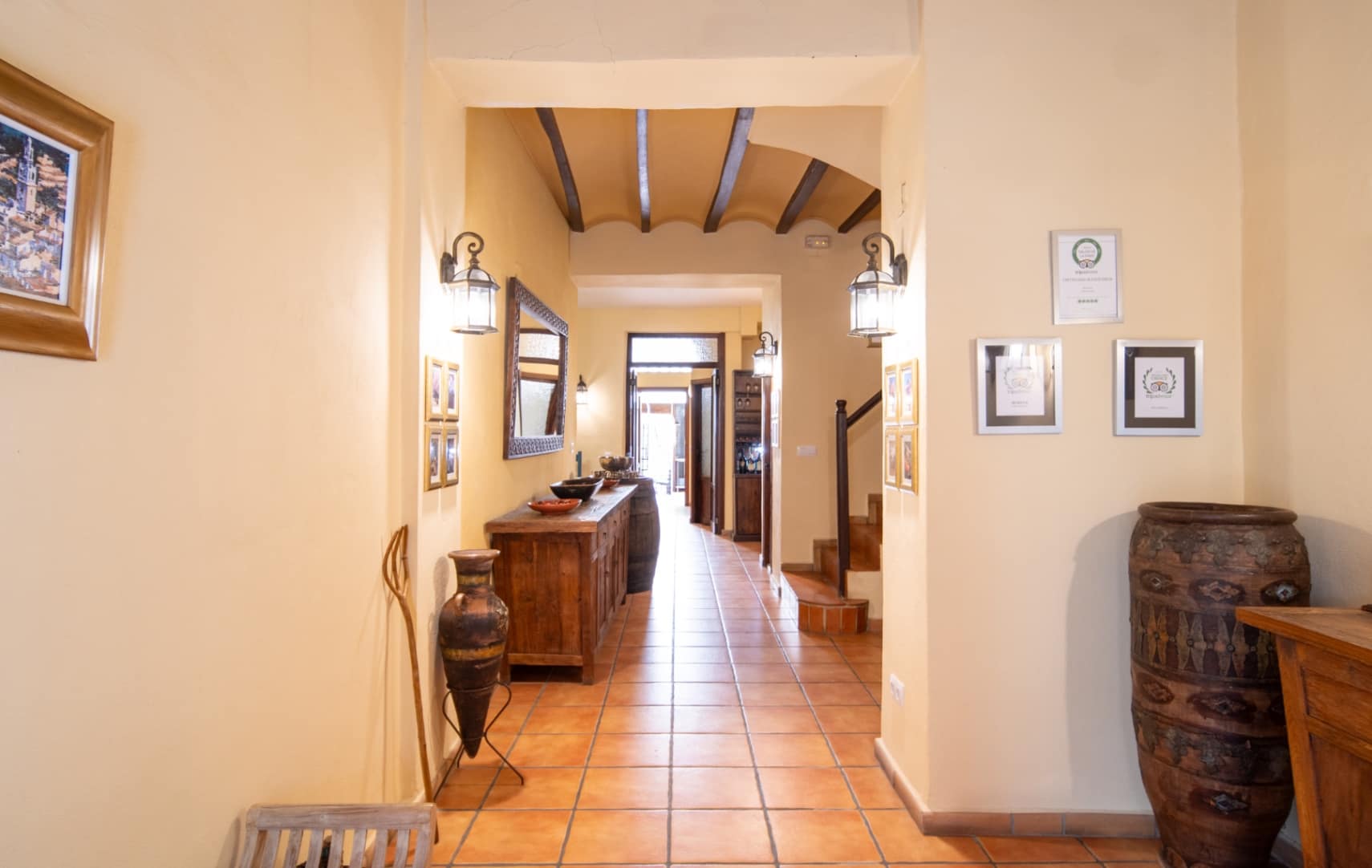 Set over three floors, the house features seven bedrooms and six bathrooms, generous living and dining areas, and a fully equipped commercial-style kitchen. Original stone walls, wooden beams, and rustic tiles create a warm, authentic atmosphere throughout.