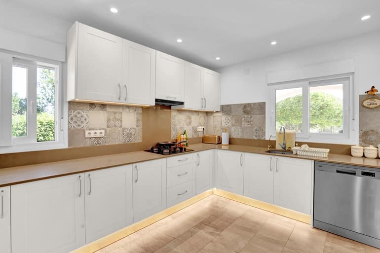 As you step inside from the naya we find a welcoming open plan lounge/ diner and an independent fully appointed kitchen all tastefully renovated in recent years. The hob is gas and the water tap is filtered. There is an integrated microwave, oven and dishwasher. The kitchen and master bedroom´s hot water comes from an additional electric heater not from the main boiler.